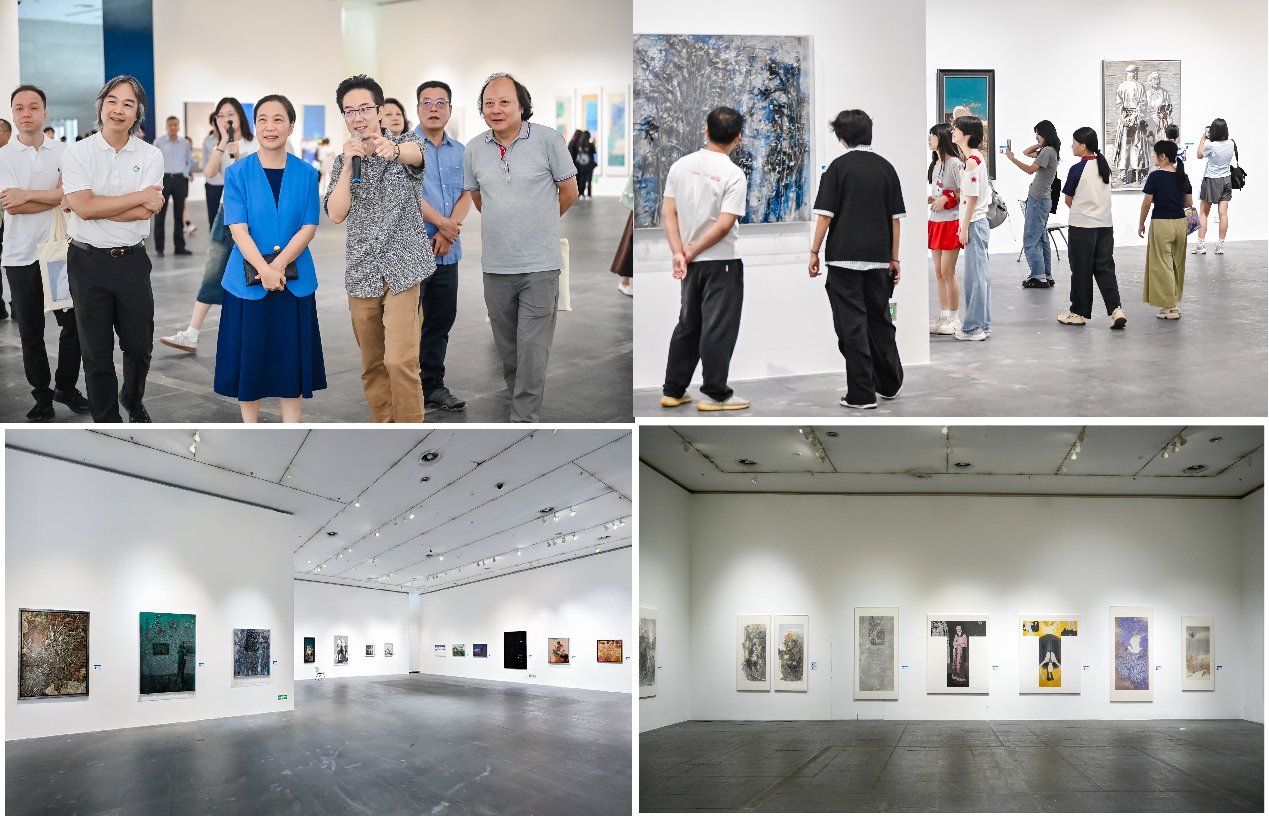 最后,林蓝书记、蔡拥华副院长、赵胜利副主席、宋陆京院长与吴荣华副院长、陈晓阳馆长共同登台,为展览启幕。伴随热烈掌声,吴荣华宣布展览正式开展,随后策展人方广智带领在场嘉宾移步展厅进行导览观展。