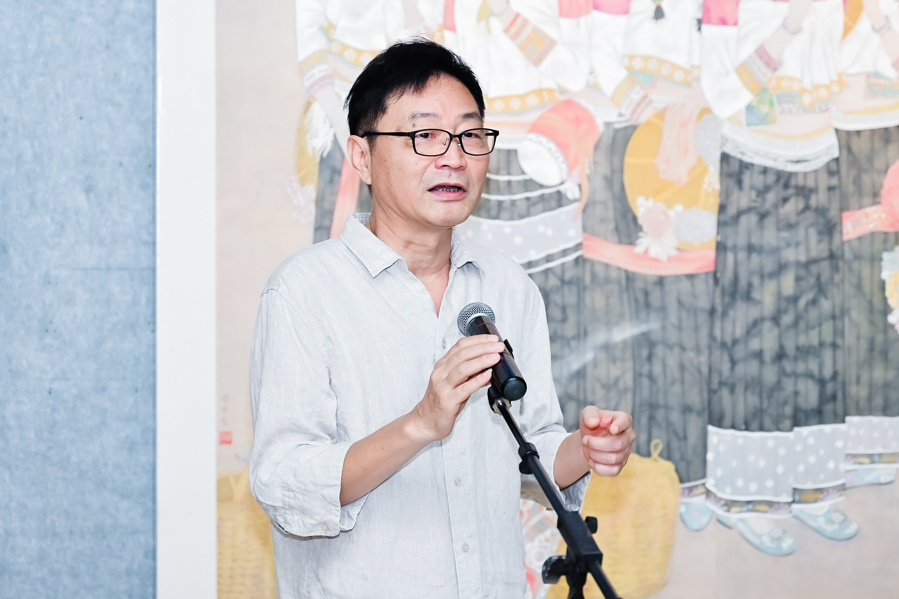福建省美术家协会负责人梁星致辞,她感谢国家艺术基金、南京师范大学美美术学院美术馆等多方支持,介绍展览由福建省美协与厦门大学艺术学院将这场跨越海峡的艺术之约从闽江带到长江边,既实现了两岸四地的文化交流与心灵相聚,也期待江南文化能为青春艺术注入新灵感。