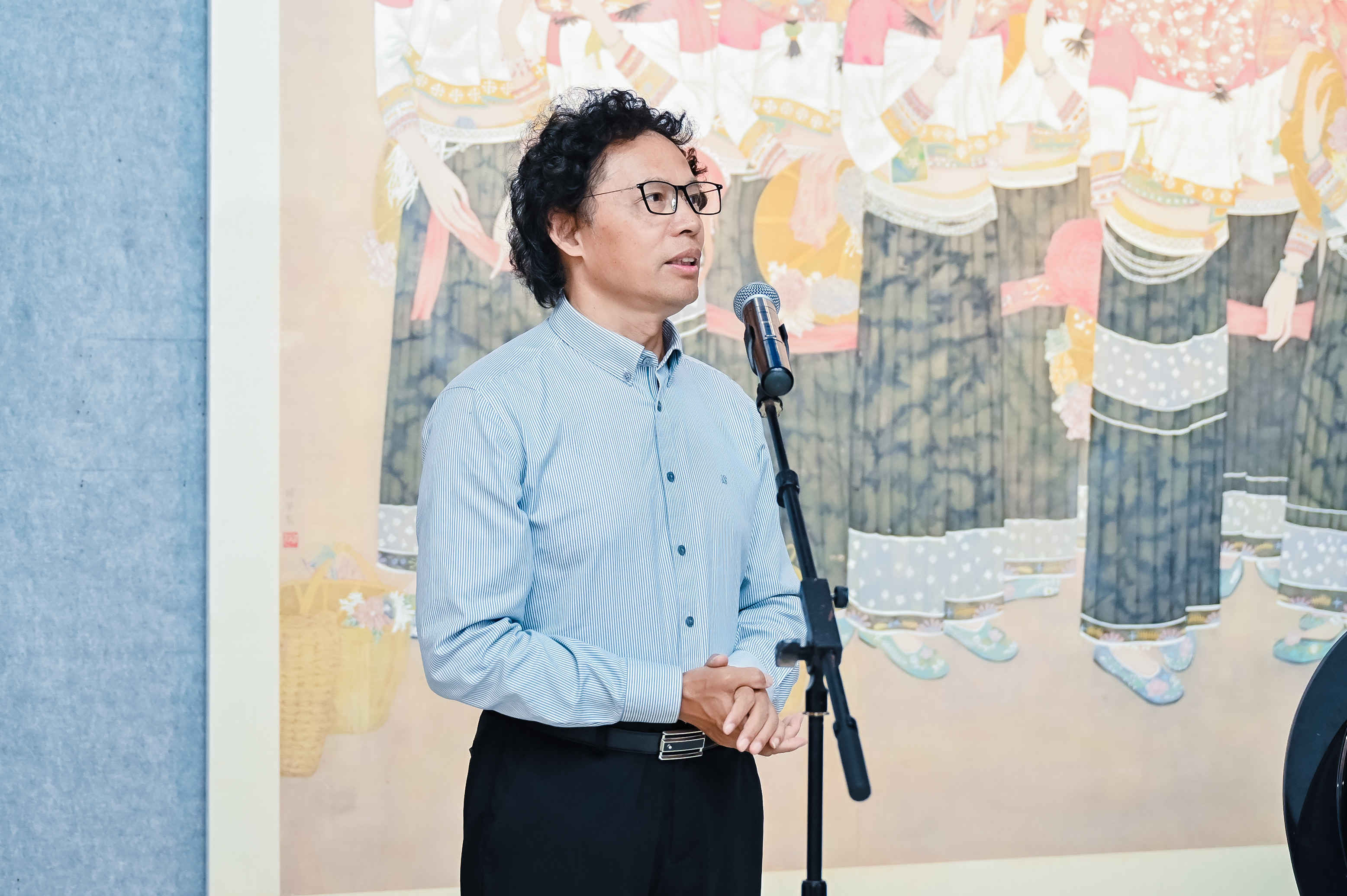 南京师范大学美术学院原副院长薛军伟代展览策展人方广智介绍本站展览汇聚海峡两岸暨香港、澳门四地青年艺术家的138件国、油、版等高水平作品,响应习近平总书记对两岸青年的期望,为四地青年艺术家搭建交流平台,并结合南京历史底蕴与南师大美院优势,期许青年艺术家互学互鉴,为文化交融与民族复兴发力。