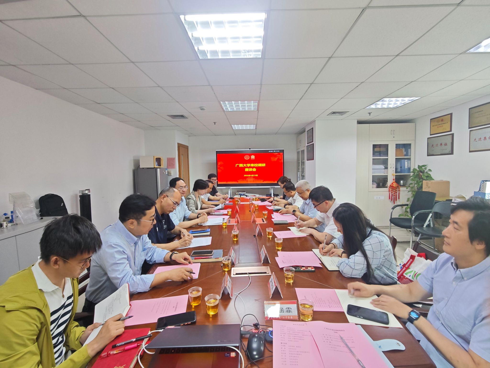 4月15日,广西大学党委副书记汤志华一行来校调研。校党委常委、副校长吴超鹏出席调研会并致辞,社科处处长潘越主持会议。